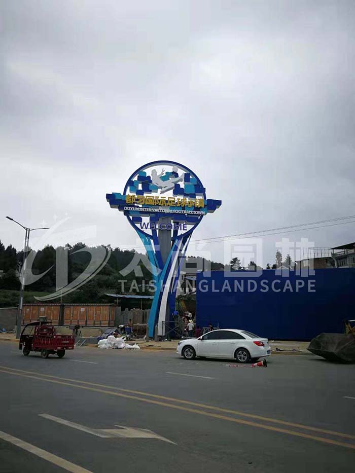 安裝于貴州都勻市足球小鎮,雕塑高20米。 都勻國際足球文旅小鎮